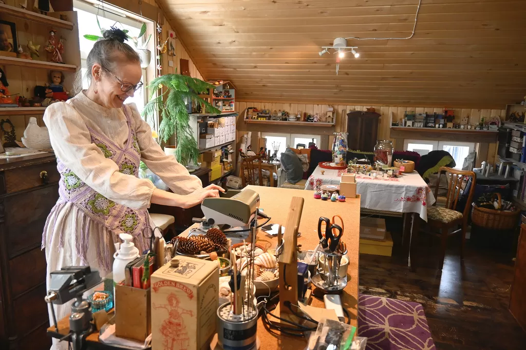Taivassalossa asuvan Rannveig Steinthórsdóttirin käsissä kirppislöydöistäkin sukeutuu kekseliäitä miniesineitä. Nukkekotiharrastajat oppivat hänen luonaan tekniikoita ja saavat uusia ideoita.